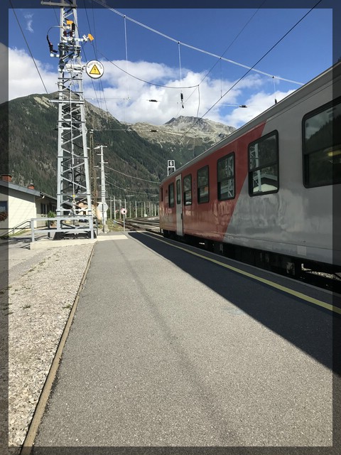 Frühstück gibt es in einer Bäckerei direkt neben dem Hotel und dann geht es durch den Frühnebel wieder los. Nachdem die Ortschaft direkt am Talabschluss liegt, geht es auch weiterhin gut bergauf, aber etwas weniger steil und weniger lang als gestern. Kurz vor dem Bahnhof von Bad Gastein, den historischen Teil der Ortschaft mit den Jugendstilhotels haben wir verlassen, wird es deutlich flacher und in der Folge rollen wir auf einen hübschen Radweg in Richtung Böckstein, wo sich die Verladestelle für die Tauernschleuse befindet, den Eisenbahntunnel, der hier als Shuttle für Autos, Fahrräder und Personen den Alpenhauptkamm unterquert.