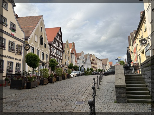 Hinter dem Silbersee biegen wir nach Westen ab. Der letzte Anstieg für heute ist das einzige Stück ohne gescheiten Radweg. Die Landstraße GZ31 ist glücklicherweise nicht allzu stark befahren und wir erreichen problemlos das kleine Rettenbach. Von hier aus sind es nur noch ein paar Kilometer bis nach Günzburg, wo wir an einer Tankstelle unsere Vorräte ausfüllen, auch schon mit dem morgigen Feiertag im Hinterkopf, ehe es zum Hotel geht. In diesem sind wir schon auf der Fahrt nach Bordeaux abgestiegen und haben es in guter Erinnerung. Allerdings hat inzwischen der Betreiber gewechselt: war es damals noch ein Pächter, hat nun der Eigentümer selber übernommen. Wir schauen uns etwas in der hübschen Innenstadt von Günzburg um, ehe es ein Abendessen gibt und wir ins Bett gehen.