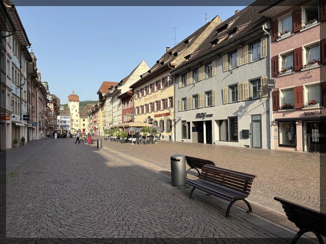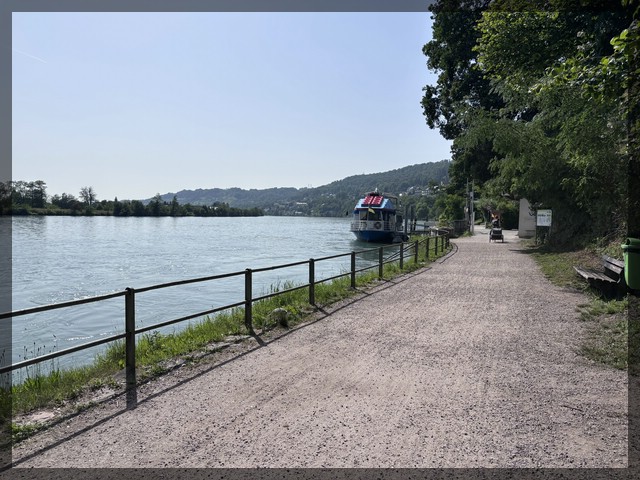 Bald erreichen wir die Ausläufer von Waldshut, zuerst geht es recht unschön entlang großer Straßen doch bald kommen wir zum Rhein, der uns im Vergleich zur jungen Donau in den vergangenen Tagen riesig vorkommt. Das letzte kurze Stück in die sehr schöne Altstadt von Waldshut geht es nochmal steil nach oben. Nach dem Einchecken ins Hotel gibt es ein leckeres Abendessen in einem lokalen Burgerrestaurant und dann geht es ins Bett.
