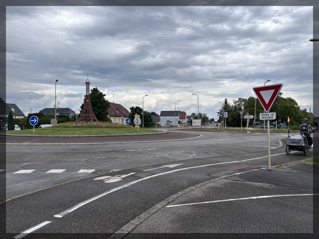 Kreisverkehr mit Eiffelturm am Ortseingang von Bantzenheim
