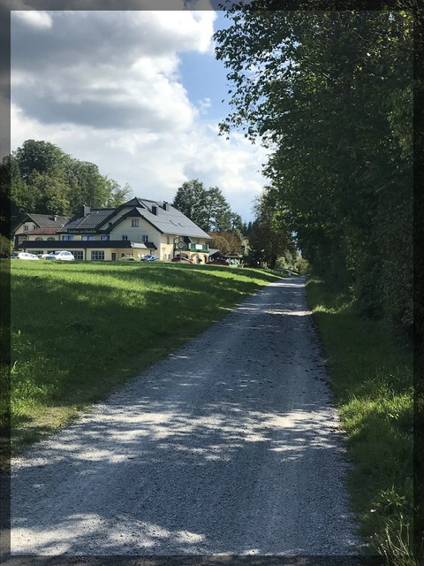 Das Wetter ist heute deutlich besser als gestern: zwar ist der Himmel noch bedeckt, aber der Regen hat sich verzogen. Nach dem Frühstück rollen wir entlang des Waginer Sees in Richtung Südosten. Immer auf der St2104 Richtung Freilassing, welche wir nur bei Petting kurz verlassen, da der Radweg hier durch den Kern dieses kleinen und hübschen Städtchens führt. Witzigerweise endet der Radweg entlang der großen Straße in Schönram, so dass wir ein wenig nach Süden ausweichen müssen. Direkt hinter Schönram werden irgendwelche Gasrohre neu verlegt. Obwohl die Baufahrzeuge nahezu den gesamten Platz in Anspruch nehmen, ist das Sträßchen nicht gesperrt. Wir schieben die Räder mitsamt Anhänger ein kurzes Stück über die Wiese und auch ein entgegenkommendes Auto kommt mit viel Rangieren irgendwie durch. In der Folge ist die Strecke zwar ein wenig hügeliger als zuvor, dafür aber deutlich schöner, interessanter und einsamer. Erst kurz vor Freilassing - direkt am Freibad - stoßen wir wieder auf die große St2104 und rollen auf dieser in das Städtchen.