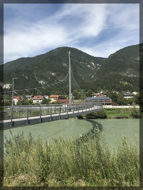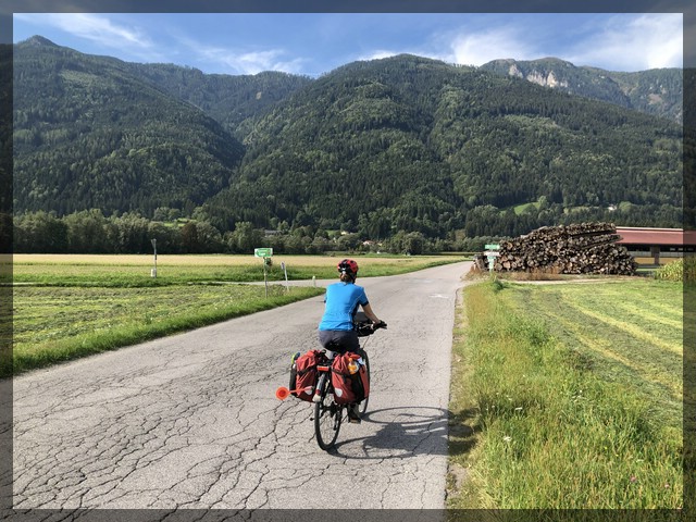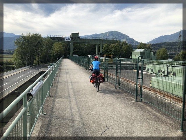 Weiter geht es entlang der Drau. Kurz vor Gummern kommen einige, aber recht unspektakuläre, Anstiege. In Gummern selber wechselt der Radweg wieder die Seite und kurz darauf verengt sich das Tal deutlich. Hier quetschen sich teilweise ein Kieswerk, eine Straße, die Bahnlinie, der Radweg und der Fluss in den wenigen verfügbaren Raum. Als alles wieder etwas breiter wird, sind wir fast schon in Villach. Hier könnten wir nun ohne größere Steigungen in Richtung Osten nach Klagenfurt und weiter nach Slowenien fahren. Gefühlt steht uns auch schon der Weg bis zum Ende des Alpe Adria Radwegs offen, aber das dieses Gefühl nicht stimmt, wissen wir. Im Gegenteil, wir freuen uns besonders auf die in den kommenden Tagen noch auf uns wartenden Berge.