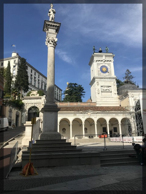 Wir kennen einige schöne Städte im Norden Italiens, hätten aber Udine bisher nicht in deren Liste mit aufgenommen. Von daher sind wir positiv überrascht von dem, was wir vorfinden: wunderschöne alte Sträßchen, Gässchen, Gebäude und Kirchen. Als Höhepunkt die Piazza della Libertà mit ihrem historischen Uhrenturm und dem dahinter auf einem Hügel thronenden Kastell. Es gibt auch sehr gute Eisdielen, deren Produkte wir alle drei sehr genießen. Aktuell findet in Udine ein Food-Festival statt, mit vielen Fressständen. Auch wenn wir in einem profanen Lokal zu Abend essen. gönnen wir uns an einigen dieser Stände kleine Nachtische, zum Beispiel einige gute Käsestücke oder direkt neben unserem Hotel eine Portion Kaninchenfleisch.