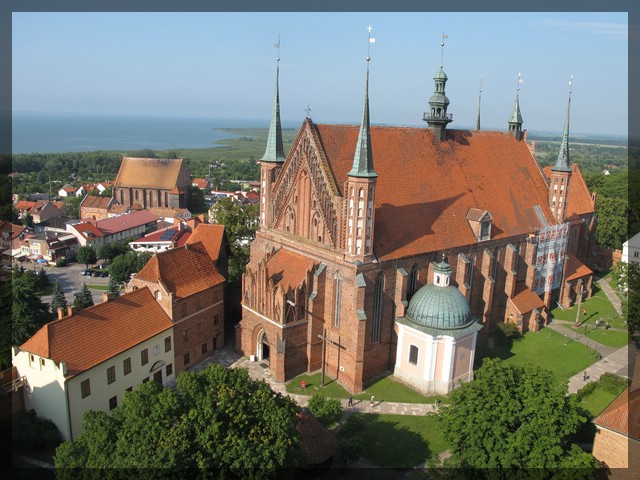 In Frombork machen wir uns frisch und besichtigen dann das Gelände um den eindrucksvollen Backsteindom mit der Domburg. Hier war Nikolaus Kopernikus die Jahre von 1503 bis 1543 als Domherr tätig - im Dom befindet sich sein Grab. Wir schauen uns kurz auch das Kopernikus-Museum an. Leider sind alle Exponate nur auf Polnisch beschriftet – dennoch ist es beeindruckend zu sehen, wie vielseitig Kopernikus tätig war: nicht nur als Astronom, sondern auch als Arzt, Kartograph und Wirtschaftswissenschaftler. Den Abschluss unseres Besuchs bildet der Kopernikusturm. Innen drin pendelt ein Focaultsches Pendel und von oben haben wir einen tollen Blick auf die Domanlage, die Stadt und die umgebende Landschaft sowie das Meer.