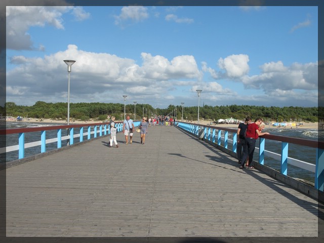 Dass unser Reisezeitraum in den erwähnten litauischen Sommer fällt, haben wir schon bei der allerersten Grobplanung unserer Reise festgestellt: schon im vergangenen November (!) waren die Hotels hier fast komplett ausgebucht. Unser erster Eindruck vor Ort bestätigt das - es sind wahre Horden an Menschen unterwegs. Vorbei an planlosen Fußgängern und Tretmobilen erreichen wir unser Hotel. Nach dem Frischmachen und einem kurzen Plausch mit der Hotelchefin stürzen wir uns ins Getümmel und flanieren die Fußgängerzone einmal hinunter zum Strand und einmal hinauf bis zu ihrem oberen Ende. Das Ganze gleicht einer Kreuzung aus Rimini, Las Vegas und dem Oktoberfest. Wir besuchen noch kurz den tanzenden Brunnen (besser als derjenige in Opole, schlechter als der bekannte Bellagio-Brunnen in Las Vegas) und suchen uns dann ein Abendessen.