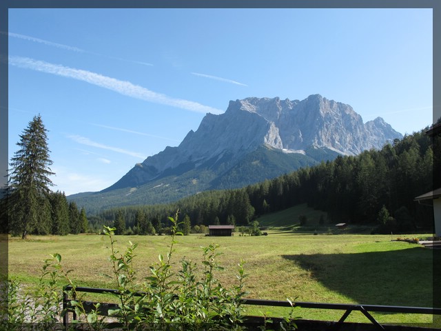 Wir lassen all diese Dinge hinter uns und fahren im stetigen Bergauf- und Bergab durch schönen Bergwald nach Heiterwang. Von hier an verläuft die Route auf wechselnden Untergrund, immer bergauf, in Richtung Ehrwald. Kurz vor Ehrwald verlieren wir gut an Höhe und kommen dann in den schönen Talkessel, prominent begrenzt von Grubigstein, Daniel, Zugspitze und Ehrwalder Sonnenspitze. Kurz vor Biberwier zieht die Route wieder gut nach oben, wir kommen an einer Wiese mit niedlichen Alpakas vorbei und befinden uns dann schon im Anstieg zum Fernpass. Noch ein kurzes Stück verläuft der Radweg auf Asphalt direkt an der großen Straße, dann biegen wir am Weißensee auf einen Schotterweg im Wald ab. Nach einem kurzen ebenen Stück beginnt der finale Anstieg zum Fernpass. Auf einen niedrigen Gang ist das Ganze trotz unbefestigter Oberfläche des Wegs auch mit unseren Straßenrädern gut zu machen. Oben angekommen machen wir kurz Pause. Von einem Aussichtspunkt haben wir einen tollen Blick auf die tief unter uns verlaufende Fernpassstraße auf der momentan ein ziemlicher Stau herrscht. Wir treffen auch auf andere Radler. Dirk darf diesen die hiesige Bergwelt inklusive der immer noch prominent am Horizont stehenden Zugspitze erklären, dann wird sich verabschiedet und es geht wieder bergab.