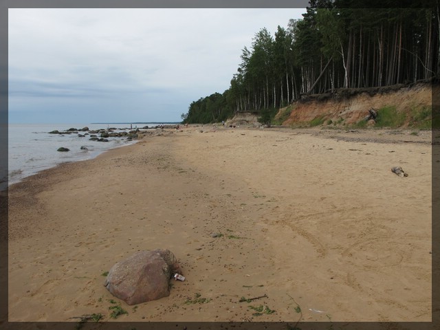 Weitere Abstecher führen uns in die malerische Gegend um Liepupe und an die Klippen von Veczemju. Die Klippen bestehen aus mehrere Meter hohen Sandsteinformationen in sehr interessanten Farben (Verlauf gelb-rot). Auf einem sehr kleinen Weg geht es direkt an der Küste weiter nach Norden, bis wir kurz vor Vitrupe wieder auf die A1 stossen. Nach ein paar Kilometern verlassen wir diese allerdings wieder und legen die letzten Kilometer zu unserem Tagesziel wieder auf einem sandigen Waldweg zurück. Wir haben uns eine Cabin auf einem Campground nahe Svetciems gebucht. Alles etwas schlichter als bei den letzten beiden Übernachtungen: direkt vor unserem Fenster steht blühender Lavendel, umschwirrt von zig Hummeln und Schmetterlingen. Etwas weiter weg geben sich viele Bachstelzen ein fröhliches Stelldichein und einmal spaziert in aller Seelenruhe ein Futter suchender Storch nur ein paar Meter an unserer Terrasse vorbei.