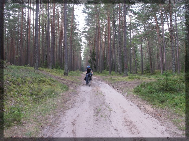 Wir fahren auf dem gleichen Waldweg weiter nach Norden, auf dem wir gestern von Süden gekommen sind. Die ersten Kilometer entpuppen sich als schlimme Tiefsandpiste, so dass wir nur sehr langsam voran kommen. Erst bei Salacgriva stoßen wir wieder auf Asphalt und kurz darauf wieder auf die A1, der wir nun weiter folgen. Gegenüber gestern ist der Verkehr viel schwächer und das Fahren ist durchaus angenehm.