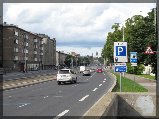Der Radweg führt sehr gut bis ins Stadtgebiet, vorbei an einer Wasserskianlage und einem Frisbeegolfplatz. Näher am Innenstadtbereich sind wir entweder auf der Fahrbahn oder dem Gehweg unterwegs, was aber auch immer sehr gut geht. Tallin begrüßt uns deutlich urbaner als Riga, was daran liegen mag, dass wir nun entlang einer der Haupteinfallstraßen unterwegs sind. Sehr schnell erreichen wir die sehr mittelalterlich wirkende Altstadt. Sehr nett der Anbieter von Fahrradrikscha-Touren, der uns anspricht, ob wir eine Fahrt mit ihm machen wollen. Und unsere eigenen Räder hängen wir hinten dran?