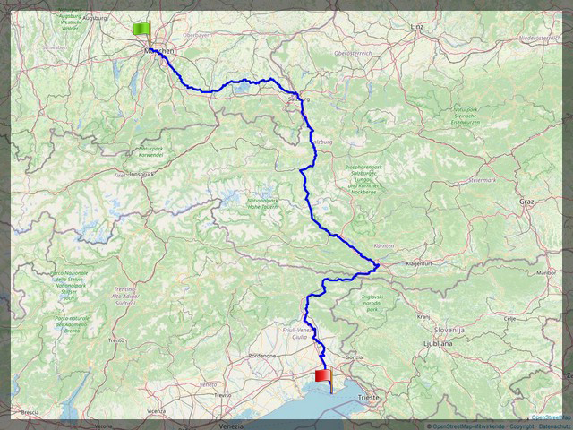 Unsere Strecke von München nach Grado, ab Salzburg entlang des Alpe Adria Radwegs
