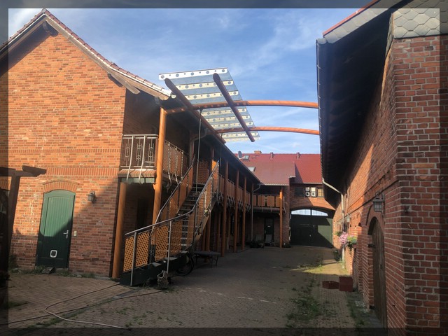 Da es in unserer heutigen Unterkunft und auch in der direkten Umgebung keine Möglichkeit zum Abendessen gibt, bleiben wir noch etwas auf der östlichen Elbeseite und gehen in ein Restaurant in Ferchland. Die Bewertungen im Internet waren super. Auf den ersten Blick wirkt aber die dunkle und menschenleere Gaststube wenig einladend. Der Eindruck wendet sich aber schlagartig, als wir in die wunderschöne Gartenterrasse hinter dem Haus geführt werden, komplett mit Weinreben umrankt. Das Essen ist sehr gut und hausgemacht, die Bedienung freundlich. Die Fähre bringt uns nach dem sehr späten Mittagessen bzw. sehr frühen Abendessen schnell auf die andere Seite der Elbe. Von hier aus sind es nur noch wenige Kilometer zu unserer Unterkunft, einem Ziegenhof in der Ortschaft Schelldorf. Wir haben erstmal etwas Schwierigkeiten, den Eingang vom Hof zu finden. Das Zimmer ist super, aber die Begrüßung ein wenig unpersönlich. Auch der Hofladen ist seltsam leer und das in Rezensionen gelobte Ziegeneis finden wir auch nicht. Wir schauen uns dennoch den Hof an und die Kinder haben viel Freunde an den Tieren. Danach spazieren wir durchs Dorf und finden dabei überraschenderweise einen recht schönen Spielplatz. Wieder zurück zur Unterkunft und dann geht es gleich ins Bett.