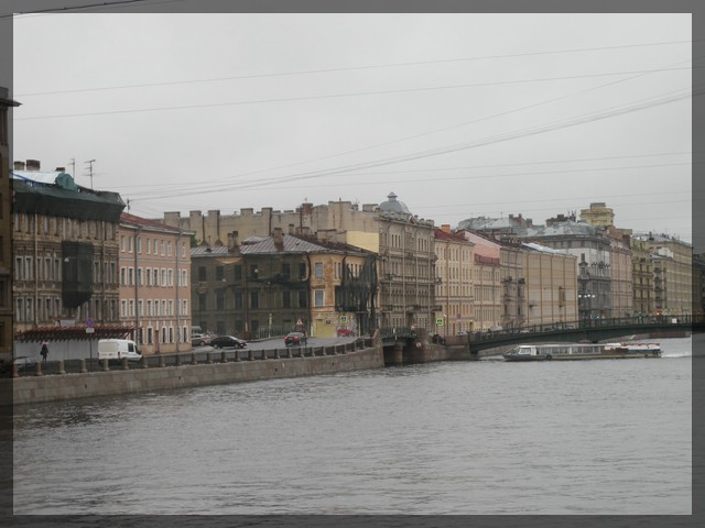 Die Stadt zieht sich, und auf dem Gehweg kommen wir durch Ampeln, nicht abgesenkte Bordsteine und mehr und mehr Fußgänger nur langsam voran. Endlich, wir glauben selbst kaum noch daran, stehen wir vor einer mit Sphinxen verzierten Brücke und dahinter, am anderen Kanalufer, ist das St. Petersburg, wie man es von Bildern her kennt.