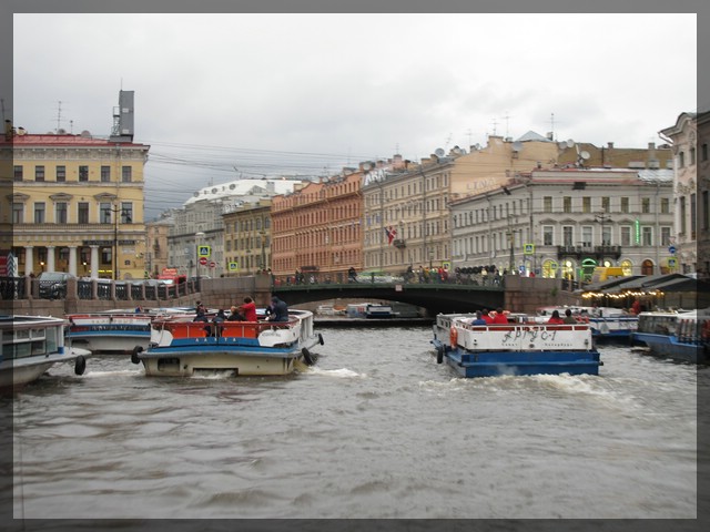 Mit qualmenden Socken kehren wir ins Hotel zurück, um uns auszuruhen. Danach machen wir noch eine Bootstour über die Newa und einige Kanäle. Wir sind begeistert von all den schönen Gebäuden, die die Wasserstraßen säumen. Leider sind viele davon sehr renovierungsbedürftig, manche davon mit Planen verhängt, die selber schon bessere Zeiten gesehen haben. Zurück an Land suchen wir uns noch ein leckeres Abendessen und spazieren dann zum Hotel zurück.
