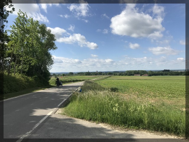 Irgendwie hat das Fahren mit Anhänger gestern doch ein wenig mehr angestrengt, als zunächst gedacht: Dirks Knie zwickt leicht. Es ist ja noch früh im Jahr und vermutlich ist – wie vor ein paar Jahren auf unserer Tour nach St. Petersburg – die seitlich stützende Muskulatur noch nicht stark genug. Damals hat sich das Zwicken im Verlauf der Tour gegeben. Daher legen wir einen Stopp an einer Apotheke ein, zum Ibu-kaufen. Falls das nicht hilft haben wir ein größeres Problem. Dann rollen wir durch die schöne Altstadt von Geisenfeld nach Norden und verlassen bald darauf dieses kleine Städtchen Richtung Vohburg.