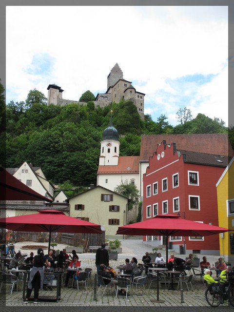 Auch die nächsten Kilometer kennen wir schon von früher her. Schön ist diese Stecke über einsame Wege und kleine Sträßchen aber immer wieder aufs Neue. Etwas südlich von Vohburg kommen wir zu einem kleinen Waldstück, der Birkenheide. Hier gäbe es einen tollen Biergarten, den wir aufgrund der frühen Stunde allerdings nicht besuchen. Stattdessen biegen wir nach links ab und kommen bald nach Vohburg. Auf unserer Tour nach Breslau und Krakau haben wir nur die Randbezirke dieser Stadt durchfahren und sind dann Richtung Donauradweg abgebogen. Nun fahren wir direkt durch. Südlich der Donau ist das stressfreier als erwartet, da wir über weite Strecken durch ruhige Wohngebiete rollen. Danach sind wir mehr oder weniger übergangslos – naja, da gibt es noch eine Brücke über die kleine Donau – in der Altstadt. Diese ist sehr schön und pittoresk. Wir verkneifen uns größere Besichtigungen und Abstecher und können daher leider auch kaum einen gescheiten Blick auf die zentral im Stadtkern gelegene Burg werfen.