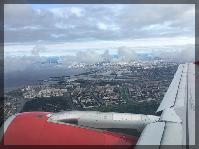 Der Flug selber verläuft ereignislos. Leider versperren viele Wolken den Blick, so dass wir zwar direkt nach dem Start St. Petersburg aus der Luft sehen können, später aber lediglich noch das schöne Pärnu in Estland durch ein großes Wolkenloch. In München sind unsere Räder schon vor dem restlichen Gepäck da. Während des Zusammenbauens spricht uns ein Mensch an, ob wir denn mit den Rädern von München aus nach St. Petersburg gefahren seien - er habe das auch einmal gemacht. Fernradfahrer überall.