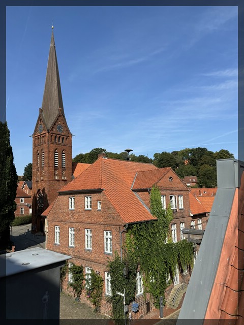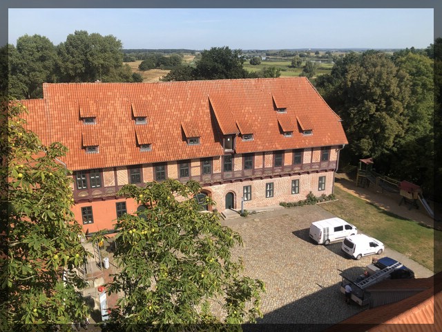 Wir steigen die Anhöhe nach oben zum Lauenburger Stadtschloss, wieder mit einem schönen Spielplatz. Es gibt eine tolle Aussicht auf Stadt und Elbe, insbesondere auch vom Aussichtsturm direkt neben dem Spielplatz. Nachdem sich die Kinder ausgetobt haben, laufen wir wieder runter zur Altstadt, wo wir in einem recht edlen Restaurant mit einer schönen Terrasse direkt am Fluss zu Abend essen und dabei die vorbeifahrenden Schiffe anschauen können.