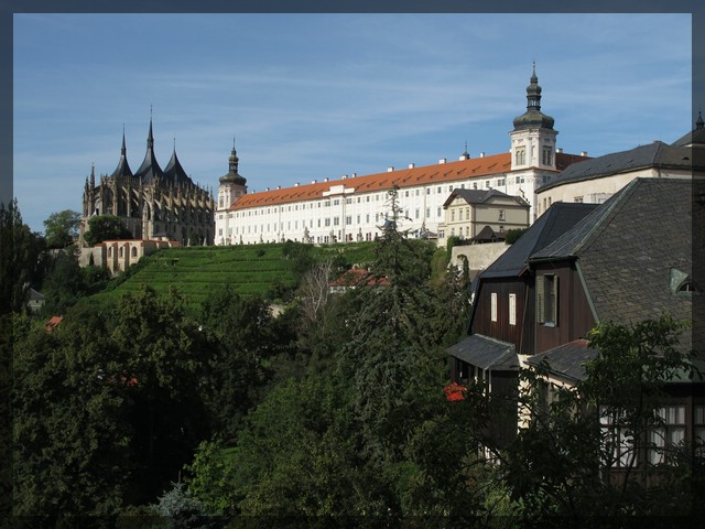 Bei sommerlichen Temperaturen haben wir heute unseren ersten Ruhetag in Kutná Hora verbracht. Dabei haben wir so manche interessante Details aus der Geschichte dieses schönen Städtchens erfahren. So war beispielsweise die große Klosterkirche von Sedlec (die wir uns gestern Abend angeschaut haben) viel eher dran und der beeindruckende Barbara-Dom von Kutná Hora ursprünglich nur der Versuch, etwas größeres zu bauen, als es die ungeliebten Nachbarn haben (die Menschheit wird sich wohl nie ändern… Ironischerweise ist heute Sedlec ein Ortsteil von Kutná Hora). Größer wurde es letztendlich schon, allerdings wurde der Dom erst nach mehr als 500 Jahren komplett fertig (im Jahr 1905, nachdem über Jahrhunderte die unfertige Westwand des Doms provisorisch mit einer einfachen Mauer verschlossen war). Der lange Baustopp war eine Folge der Ende des 16ten Jahrhunderts langsam versiegenden Silbervorkommen. Diese wurden übrigens ursprünglich von einem Mönch entdeckt, der im Wald über einen Silberklumpen gestolpert war und die Fundstelle mit seiner Kutte markierte – der Ursprung des Ortsnamens Kutná Hora (auf Deutsch Kuttenberg).