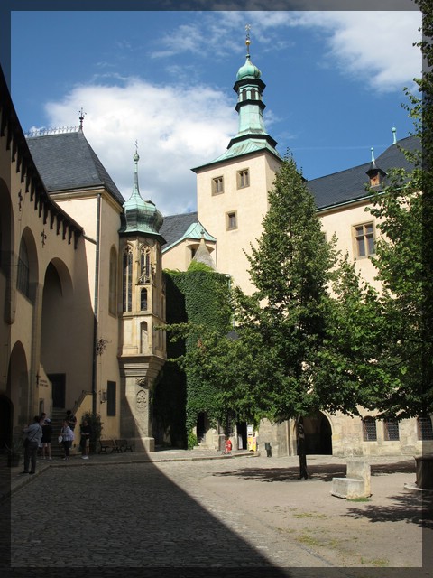 Das sicherlich sehr interessante Silbermuseum hat an Montagen leider geschlossen - gerne wären wir in alten Bergwerksstollen herumgekrochen. Stattdessen schauen wir uns ausgiebig in der Altstadt um, mit längeren Besuchen im Dom, dem toll aufgemachten interaktiven Museum im wunderschön renovierten Dacický-Haus (ein Museum über Kutna Hora und über die tschechischen Weltkulturerbestätten), der Jakobskirche mit ihrem mehr als 80 Meter hohen und leicht schief stehenden Turm und in einem winzigen Schokolademuseum (um ehrlich zu sein handelt es sich um ein Geschäft mit einem kleinen Showroom nebenan – interessant ist es dennoch und die zum Vetkauf angebotene Schokolade schmeckt echt gut). Sehr beeindruckt sind wir auch von anderen Sehenswürdigkeiten wie dem - vom alten Reichtum der Stadt zeugenden - Steinernen Haus, dem Steinernen Brunnen vom Ende des 15ten Jahrhunderts und dem Welschen Hof, der alten Münzprägestätte, wo unter anderem der berühmte Prager Groschen geprägt wurde.